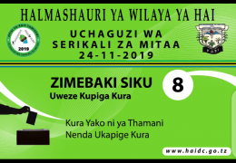Siku ya Kupiga Kura kwenye Uchaguzi wa Serikali za Mitaa ni tarehe 24-11-2019.