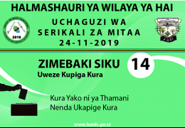 Wananchi wote wa Wilaya ya Hai waliojiandikisha kwenye Orodha ya Wapiga Kura wanakumbushwa kuwa zimebaki siku 12 kuelekea Uchaguzi wa Serikali za Mitaa ambapo watapata nafasi ya kuchagua viongozi wana...