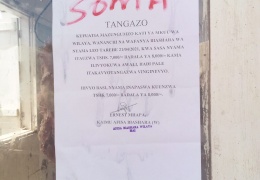 Katika picha ni Kati ya tangazo lililobandikwa kwenye Moja ya Bucha la uuzaji nyama ya Ng'ombe lililo Mjini Bomang'ombe ambalo linaonyesha kuwa kitoweo hicho kimeshuka Bei kutoka Sh.elfu 8 Ha...