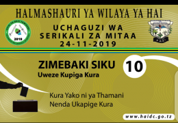 Siku ya Kupiga Kura kwenye Uchaguzi wa Serikali za Mitaa ni tarehe 24-11-2019.