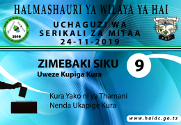 Wananchi wote wa Wilaya ya Hai waliojiandikisha kwenye Orodha ya Wapiga Kura wanakumbushwa kuwa zimebaki siku 9 kuelek...
