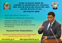 Waziri Mkuu wa Jamhuri ya Muungano wa Tanzania Mhe. Kassim Majaliwa atafanya ziara ya kikazi katika Wilaya ya Hai siku ya Ijumaa tarehe 22/02/2019 ambapo atafanya uzinduzi wa Shule Jumuishi ya Sekonda...